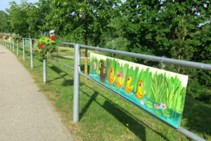 „Pirkome medines lentas. Jas pritvirtinome prie turėklų. Vaikai piešė akrilo dažais. Vėliau savo piešinius nulakavo. Tad jiems bus nebaisios oro permainos. Piešėjams skirta užduotis pavaizduoti Kupos pakrančių gamtą. Taigi jų darbeliuose ir upėje plaukiojančios antys, ir augalija, ir visa kita, ką vaikai įsivaizduoja čia esant.
