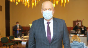 Siekiant sumažinti galimybę užsikrėsti COVID-19 liga visi posėdžio dalyviai sėdėjo prie stalo ne tik su apsauginėmis veido kaukėmis, bet ir nuo savo kaimynų atskirti plastikinėmis pertvaromis.