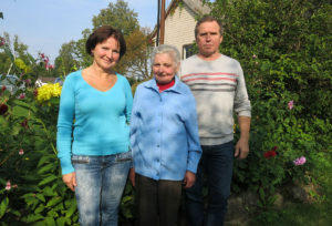 Iš šio kiemo patraukėme pas antrą kaimo senbuvę Stefaniją Alešiūnienę. Čia radome ne tik ją, bet ir jos dukrą Audronę Šafranienę, kuri per vasarą nuolat būna su mama. Deja, šįkart Stefanijos dukra ir žentas turėjo išvažiuoti savo reikalais. Tad su jais ilgiau šnektelėti neišėjo. Visgi nufotografuoti mamą ir dukrą minutėlę radome.
