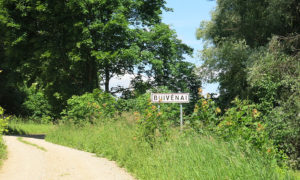 Nuo Palėvenės pusės važiuodama ūksmingu kaimo keliuku, vinguriuojančiu skardžio pakraščiu, netrukus pamačiau Buivėnų kaimo nuorodą. Prieš akis vėrėsi žalumos jūra, padalyta stuomeningų medžių alėjos, abipus kurios tai vienoje, tai kitoje pusėje bolavo sodybėlių stogai. Vienur jie visiškai priartėdavo prie žvyrkeliuko, kitur nuo jo nutolę nedrąsiai kyšojo iš už sodo medžių. Į akis krito trys kaimo kryžiai.