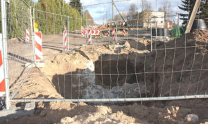 Praėjusią savaitę darbininkai, Gedimino g. tiesiantys vandens kanalizacijos vamzdyną, netoli sankirtos su Stoties g. atkasė nežinomo statinio mūro pamatus.