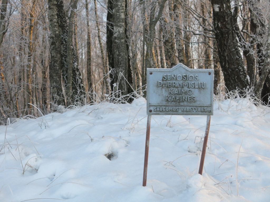 Janina dar parodė už jų sodybos galulaukėje kalvelę, ant kurios būta senųjų Dabramislių kaimo kapinių. Dabar šią vietą ženklina lentelė, kad tas kapines saugo valstybė.