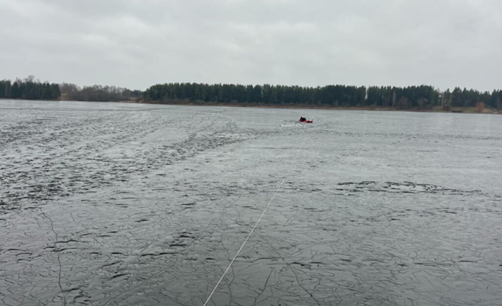 „Gana nemažu atstumu, apie 100 metrų nuo kranto, buvo įlūžęs žvejys.