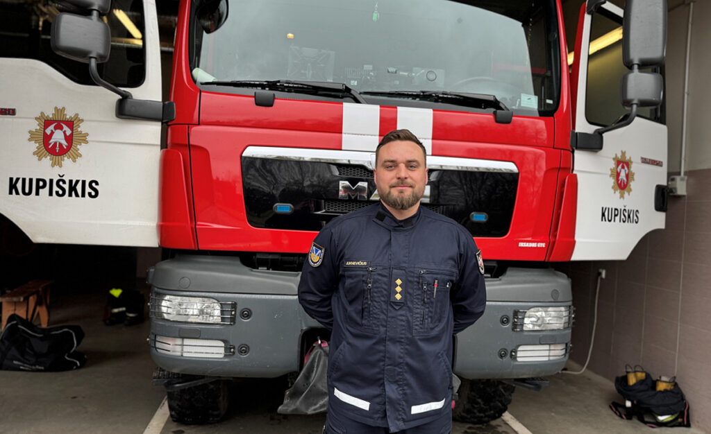 Panevėžio priešgaisrinės gelbėjimo valdybos Kupiškio priešgaisrinei gelbėjimo tarnybai laimėjęs atranką vadovaus Vaidas Juknevičius. Nuotrauka iš asmeninio pašnekovo albumo