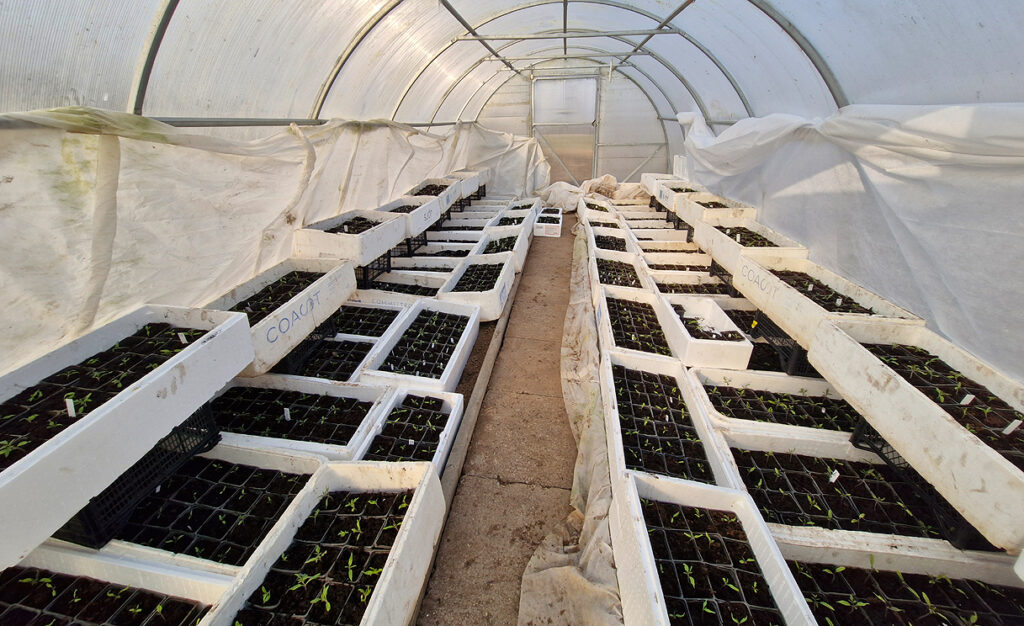 Ji sėja didelius kiekius. Tam naudoja plastikinius indelius, pvz., nuo šaldytos vištienos. Galima nusipirkti ir specialių korinių daigyklų. Nepasitvirtino, kad daigams tiktų dėžutės nuo kiaušinių. Laistant daigus jos suyra, daigai ima greitai pelyti ar išdžiūsta.