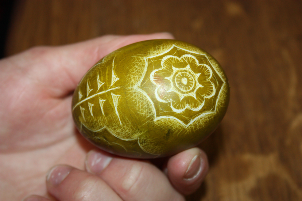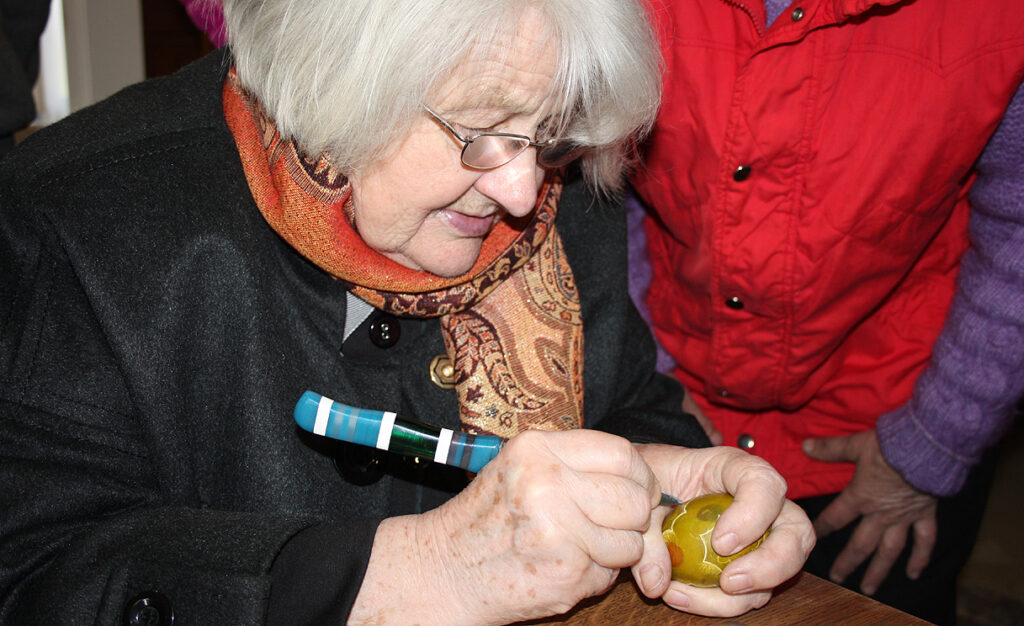 Vytenė neatsimena pirmo savarankiškai numarginto kiaušinio. Būdavo pasodinama šalia močiutės ir turėjo marginti taip, kaip ši nurodydavo. Močiutė buvo gera, bet gana reikli. Linijos turėjo būti tiesios, antspaudėliai tvirtai uždėti ant kiaušinio.