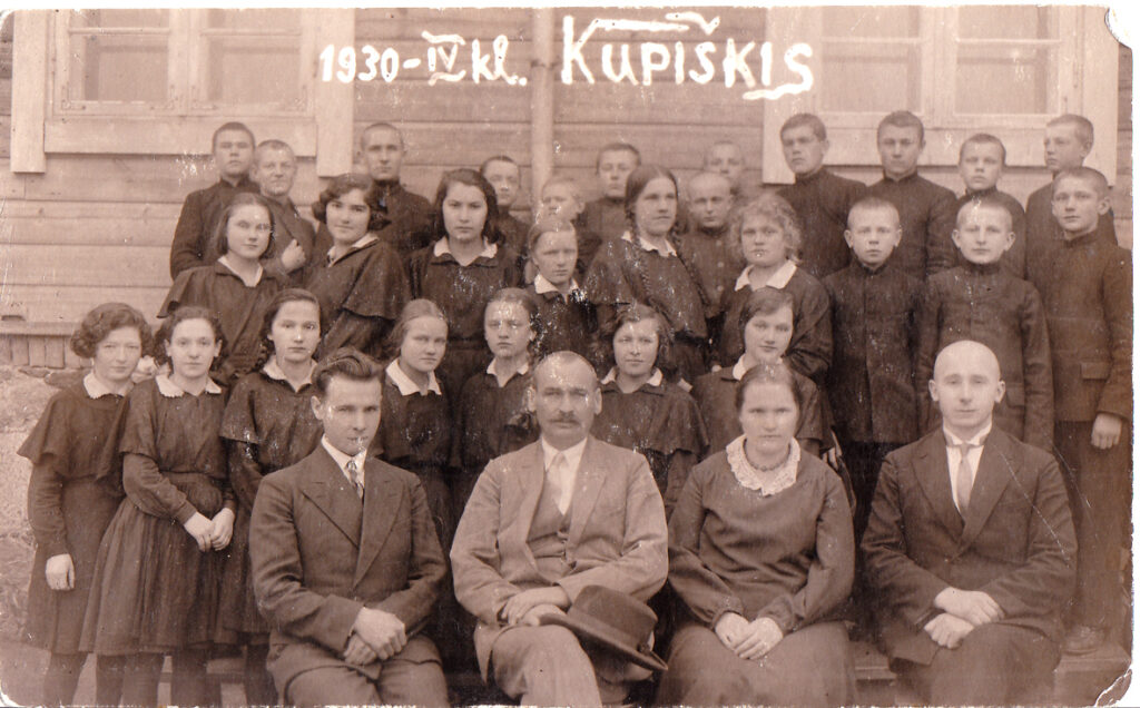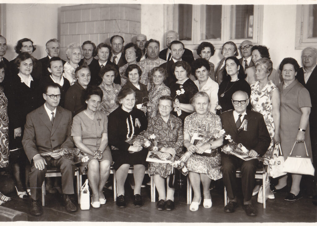 Pirmoje eilėje iš kairės antra Vanda Būdvytienė, mokyt. Adelė Visockienė, mokyt. Elzė Eidukienė, mokyt. Feliksas Visockas. Stovi paskutinėje eilėje iš kairės ketvirta Aldona Jonušytė-Zinkevičienė, šešta B. Jacevičiūtė.