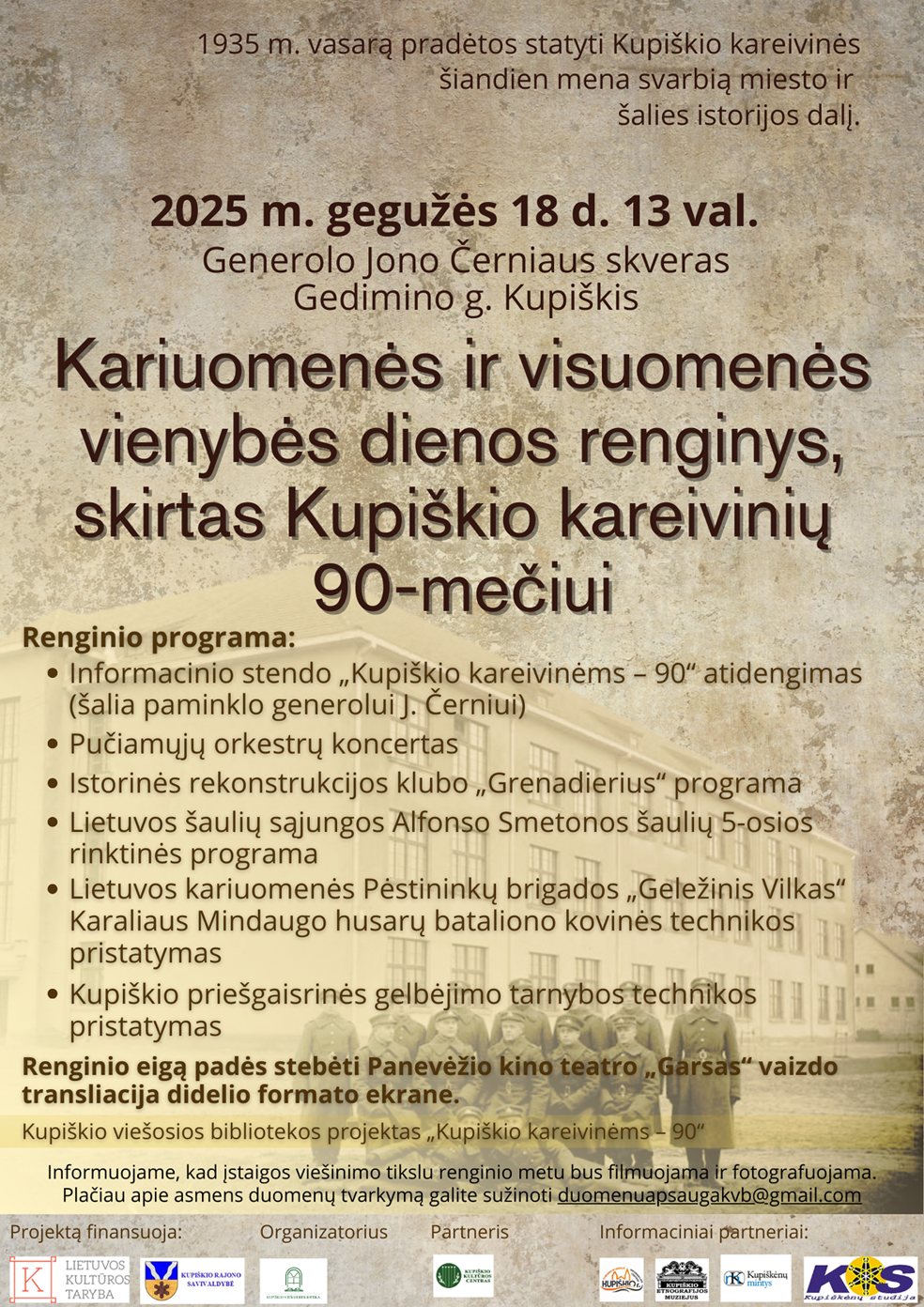 Plačiau apie renginio programą papasakojo Kupiškio viešosios bibliotekos direktorius Algirdas Venckus. Pasak pašnekovo, biblioteka organizuoti Kariuomenės ir visuomenės vienybės dienos renginį ir Kupiškio kareivinių 90-metį ėmėsi neatsitiktinai.