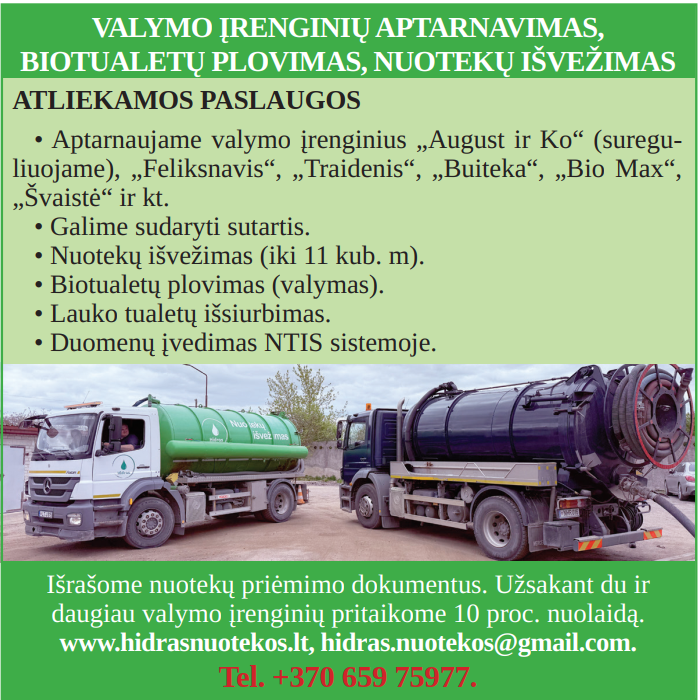 Būtent apie nuotekas, jų išvežimą ir kalbėjomės su MB „Hidras nuotekos“ vadovu Mindaugu Tumu.