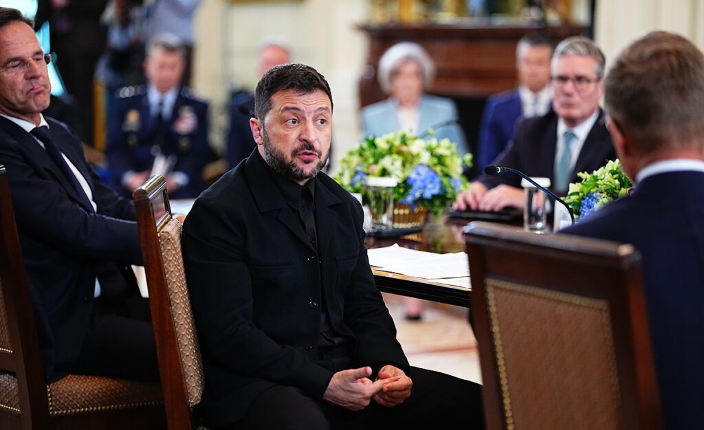 Pirmadienį Vašingtone JAV prezidentas Donaldas Trumpas susitiko su Ukrainos prezidentu Volodymyru Zelenskiu ir keliais Europos lyderiais. NATO generalinis sekretorius Markas Rutte susitikimo metu gyrė D. Trumpo pastangas siekiant užbaigti Rusijos karą prieš Ukrainą. EPA-ELTA nuotrauka