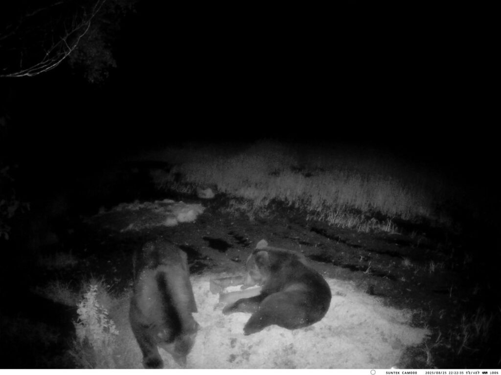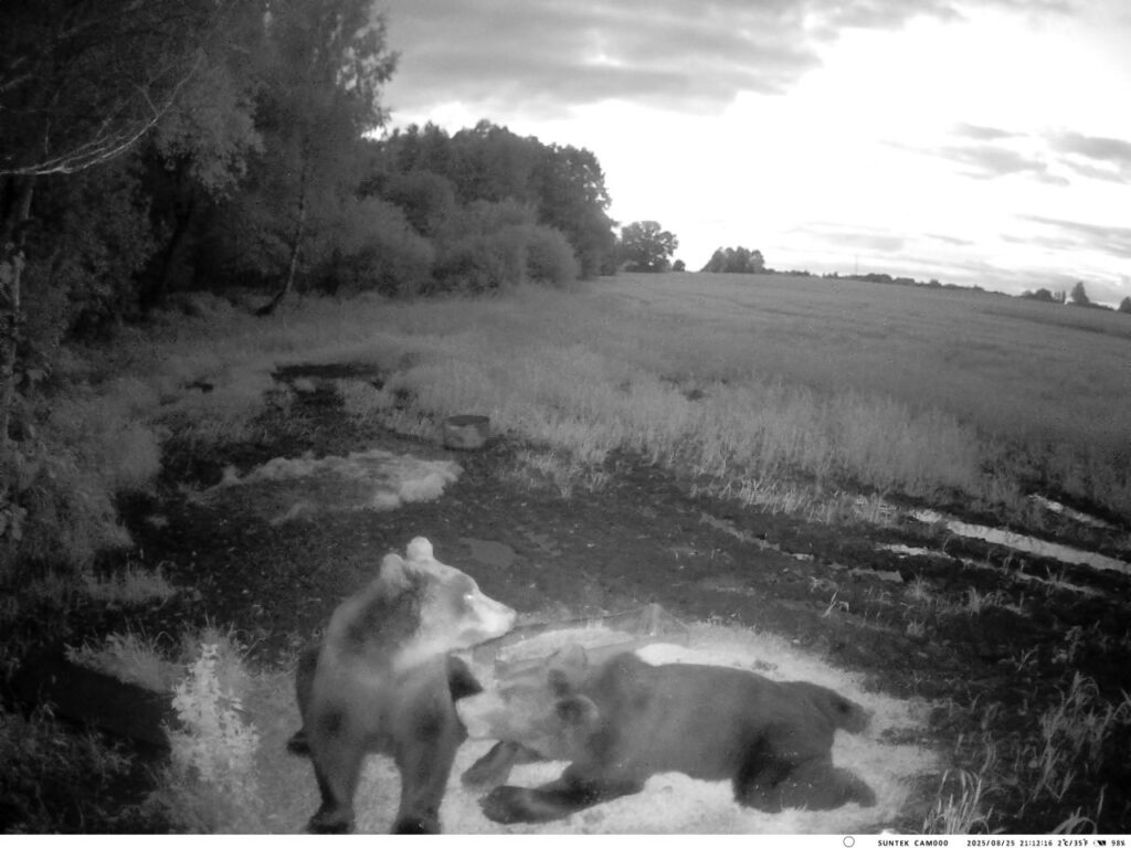 Tokį vaizdą pamatyti – tikra retenybė: galime sakyti Lietuvoje pirmą kartą užfiksuotos dvi meškos vienoje vietoje. Nors rudieji lokiai paprastai gyvena pavieniui, jauni individai kartais pakelia vienas kito draugiją ir gali pasirodyti kartu. Vaizdas užfiksuotas Kupiškio r., Uldukių km. apylinkėse“, – praneša draugija.
