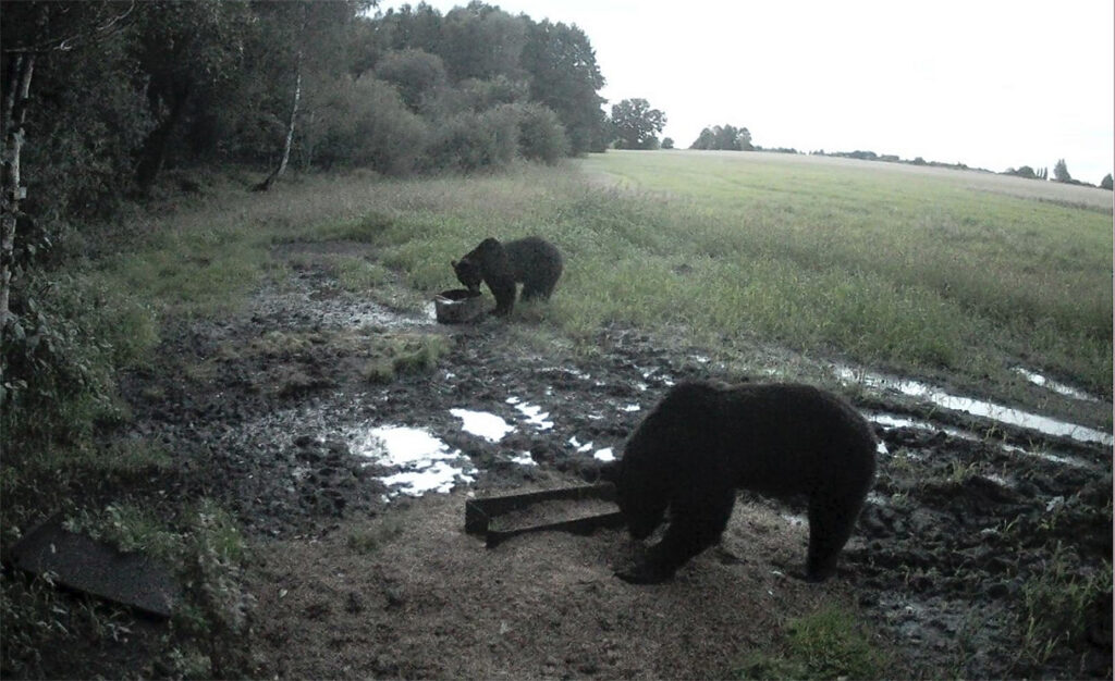 „Seniai buvome girdėję apie meškas Lietuvoje, tačiau jos niekur nedingo ir rugpjūčio 25 d. medžiotojo Gvidijaus Strolios įrengtoje žvėrių viliojimo vietoje apsilankė net dvi meškutės.