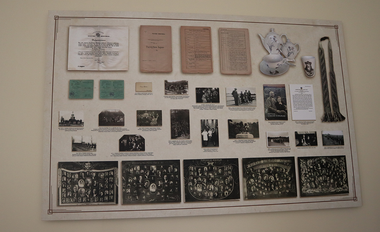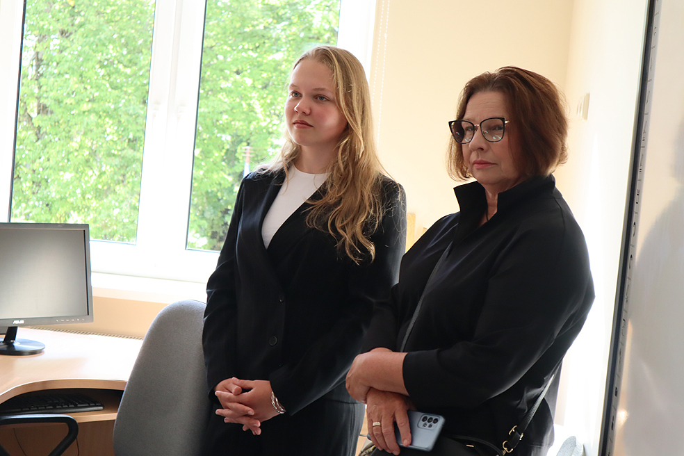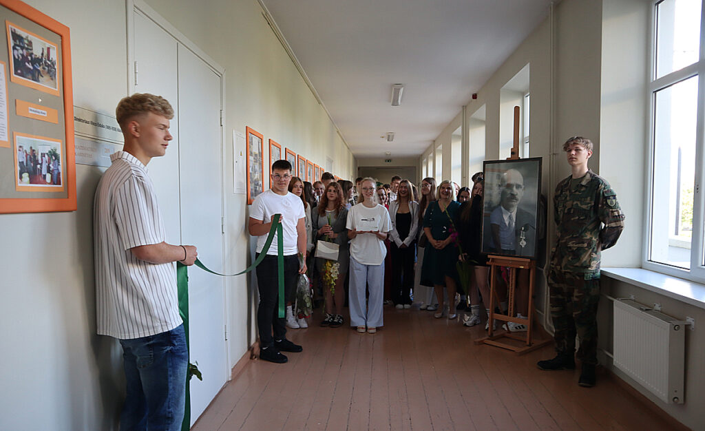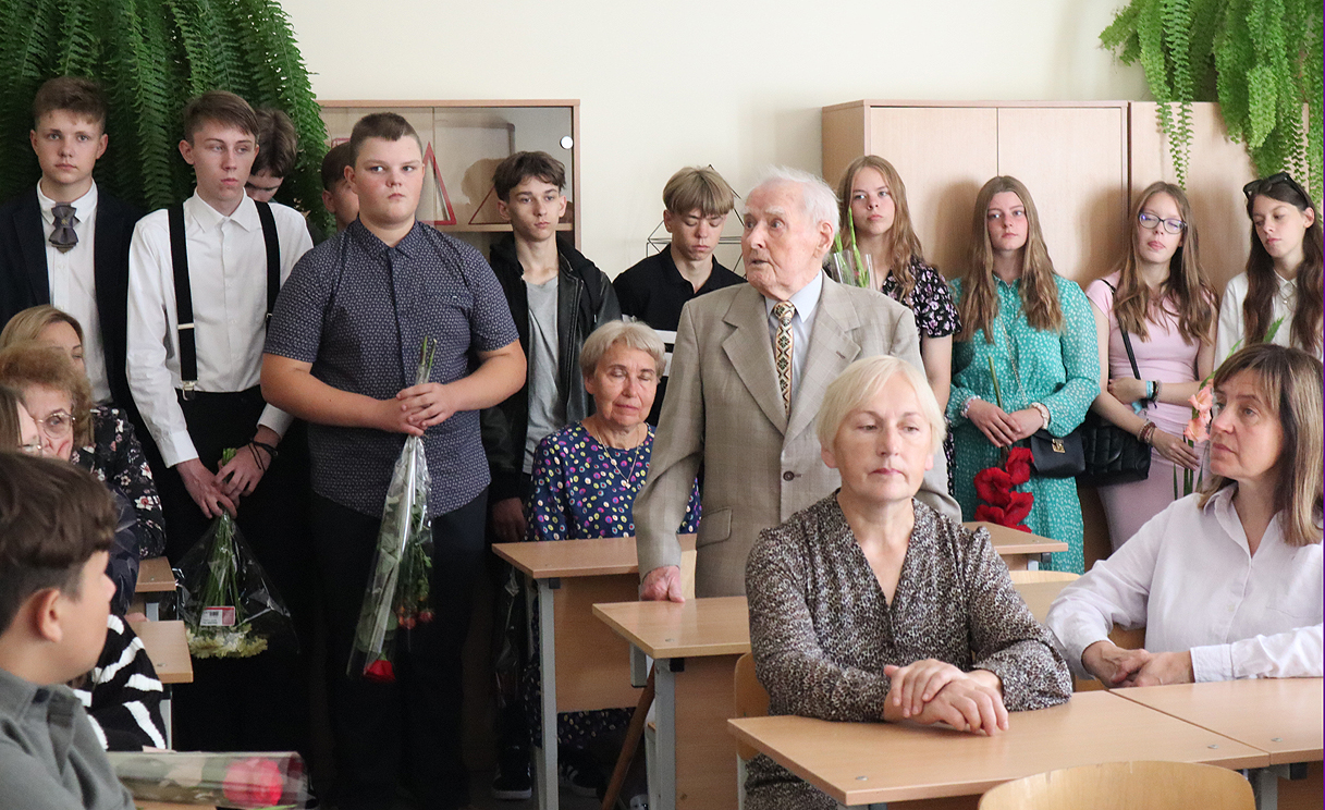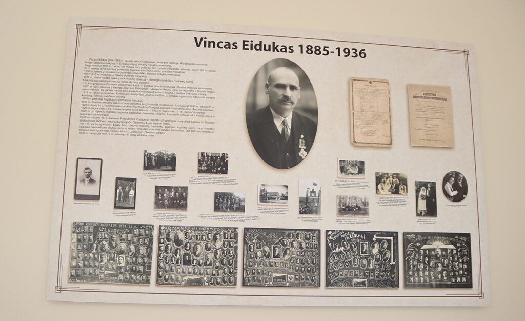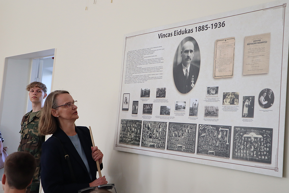 Dalis jų su kitais šventės svečiais susirinko antrame gimnazijos aukšte prie atnaujinto matematikos kabineto, kuris pavadintas Vinco Eiduko vardu. Apie tai bylojo ir šalia pastatyta šio žmogaus portretinė nuotrauka.