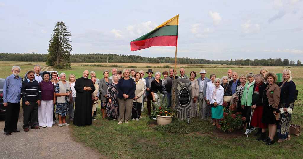 Paminklinio akmens Kazimierui Šauliui (Šaulinskui) atidengimo ceremonijos Juodžiūnų kaime dalyviai.