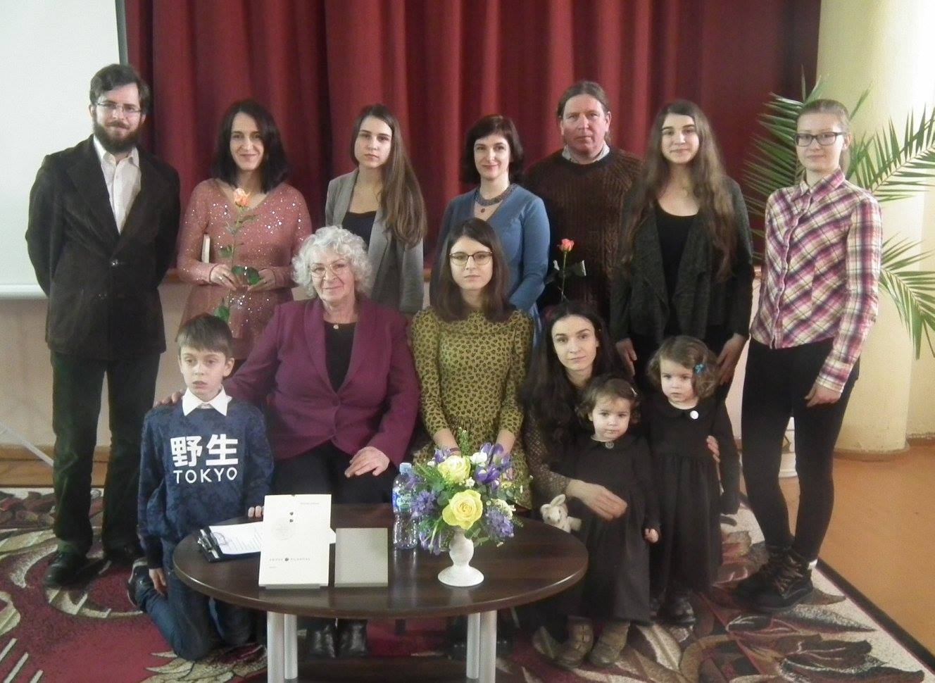 Po Rimanto Urbono knygutės „Žiogai žolėje / Abipus pilnaties“ pristatymo 2016 metais Kupiškio viešojoje bibliotekoje. Nuotraukoje pirmoje eilėje: anūkas Benas, Eugenija Urbonienė, Ievos dukra Ūla ir Veronika su dukrytėmis Elžbieta ir Adele. Antroje eilėje: Vytenis, Ieva, Julija, Kristina, brolis Algimantas Giniotis, Vilija ir Algimanto dukra Agnė.