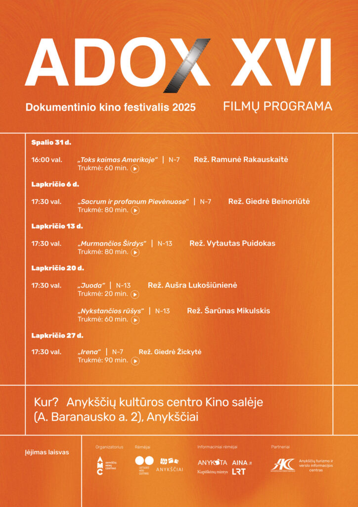 Spalio 31 d.–lapkričio 27 d. dokumentinio kino festivalis „ADOX“ jau 16 kartą džiugins anykštėnus ir miesto svečius. Praleiskime kino vakarus drauge!