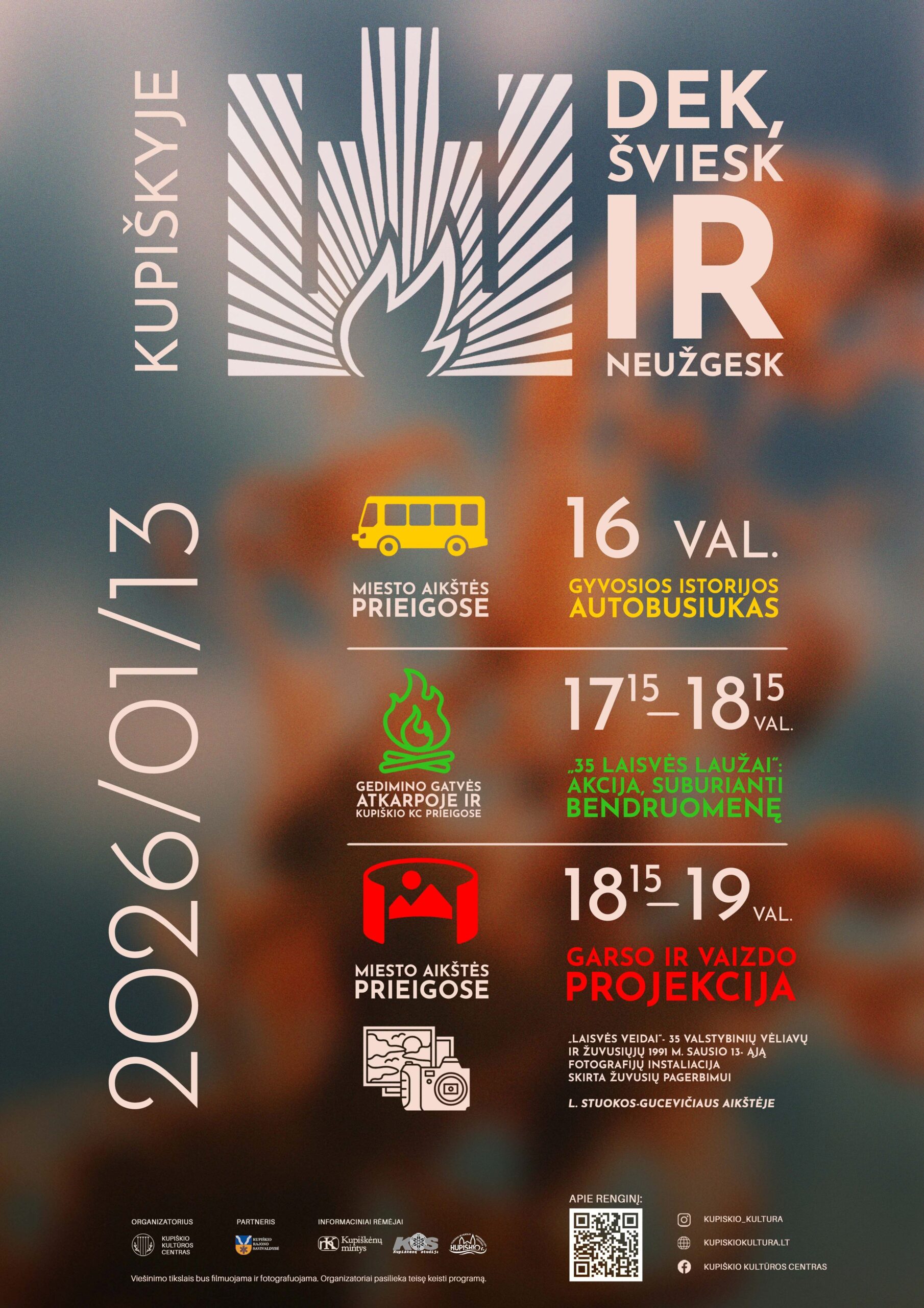 16.00 val. miesto aikštės prieigose stovės GYVOSIOS ISTORIJOS AUTOBUSIUKAS (nuotraukos, vaizdo medžiaga, laisvės „skonis“…);