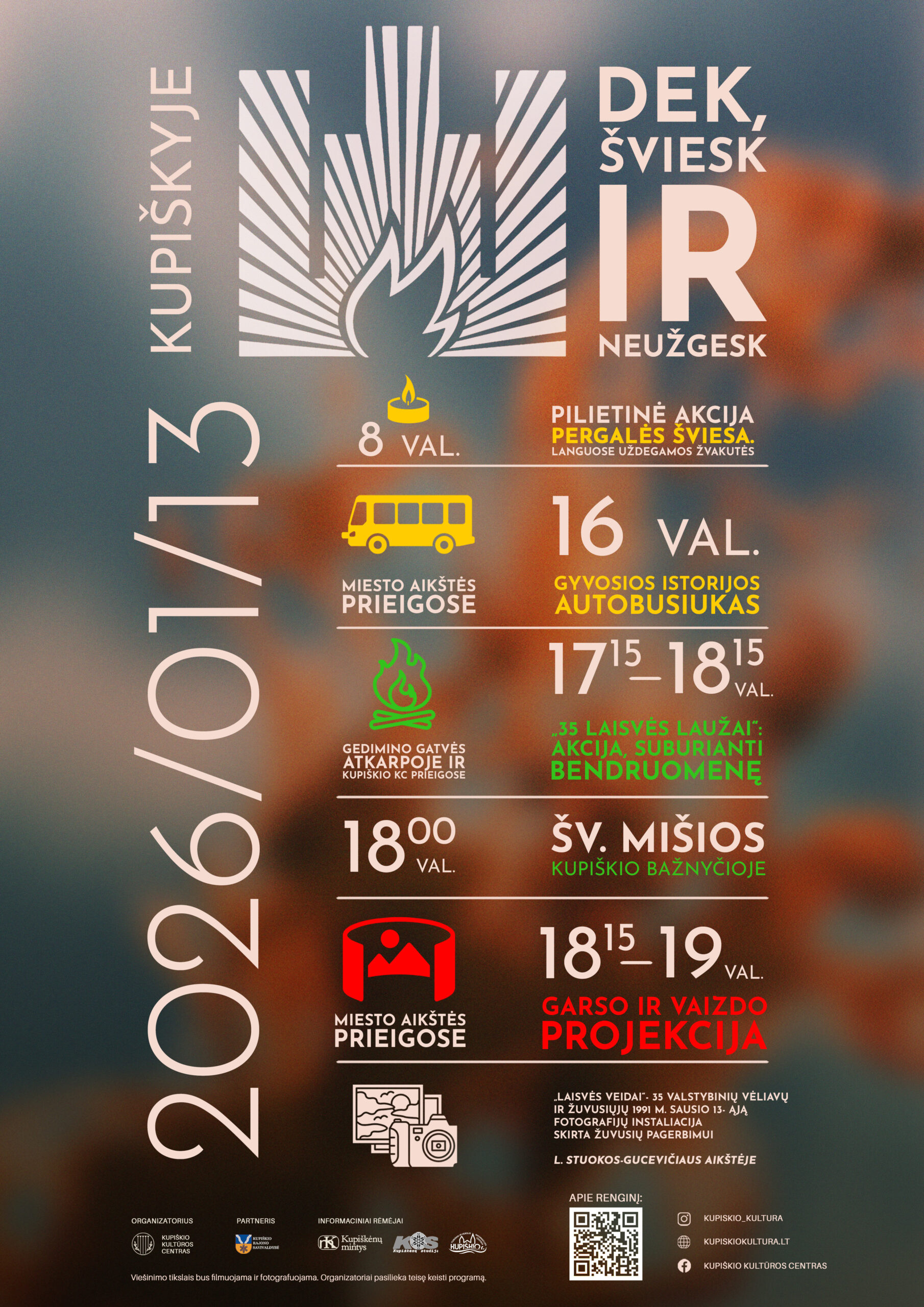 Kupiškio kultūros centras informuoja, kad sausio 13 d. Kupiškio mieste vyks renginys, skirtas Sausio 13-osios atminimui.