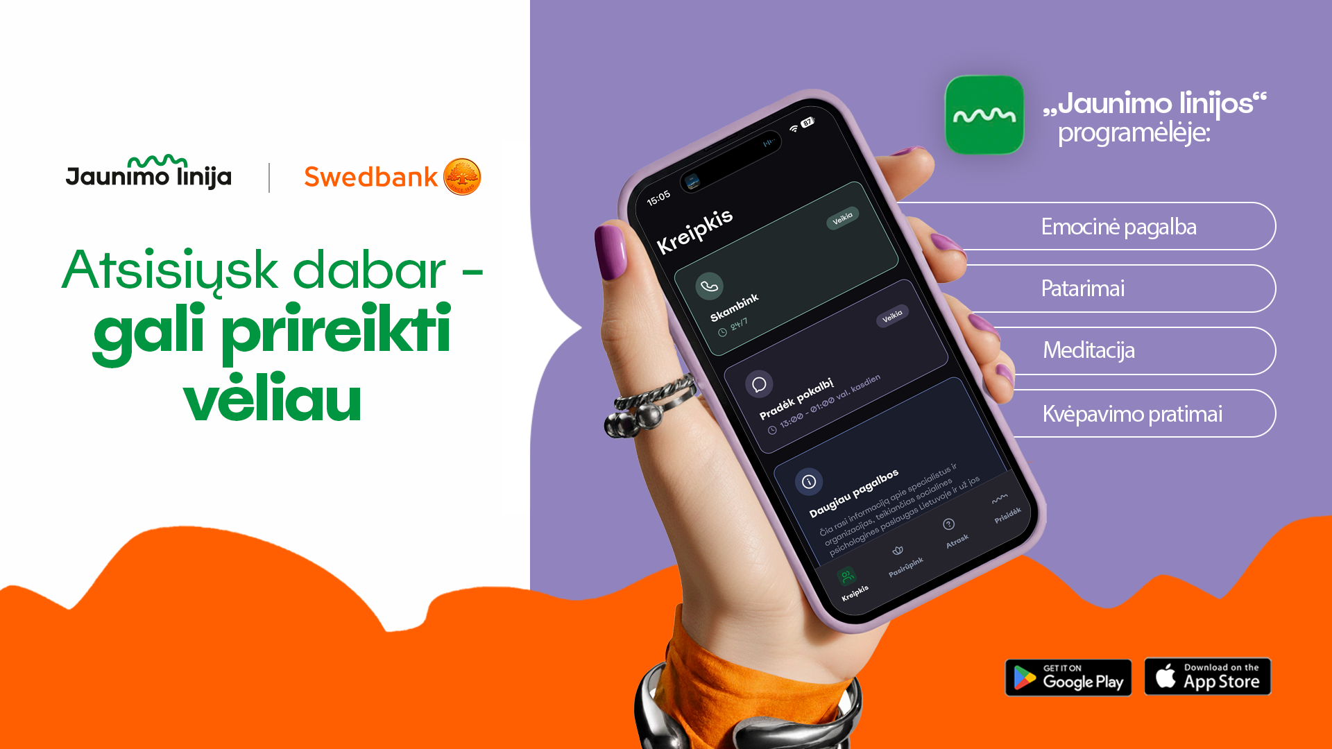 Pasak „Jaunimo linijos“ vadovės, strateginė partnerystė su „Swedbank“ leidžia ne tik mažinti emocinės sveikatos stigmą, bet ir stiprinti „Jaunimo linijos“ galimybes padėti jaunimui. „Tikimės, kad programėlė bus dar vienas šių teigiamų pokyčių katalizatorius,“ – sakė D. Bukantaitė.