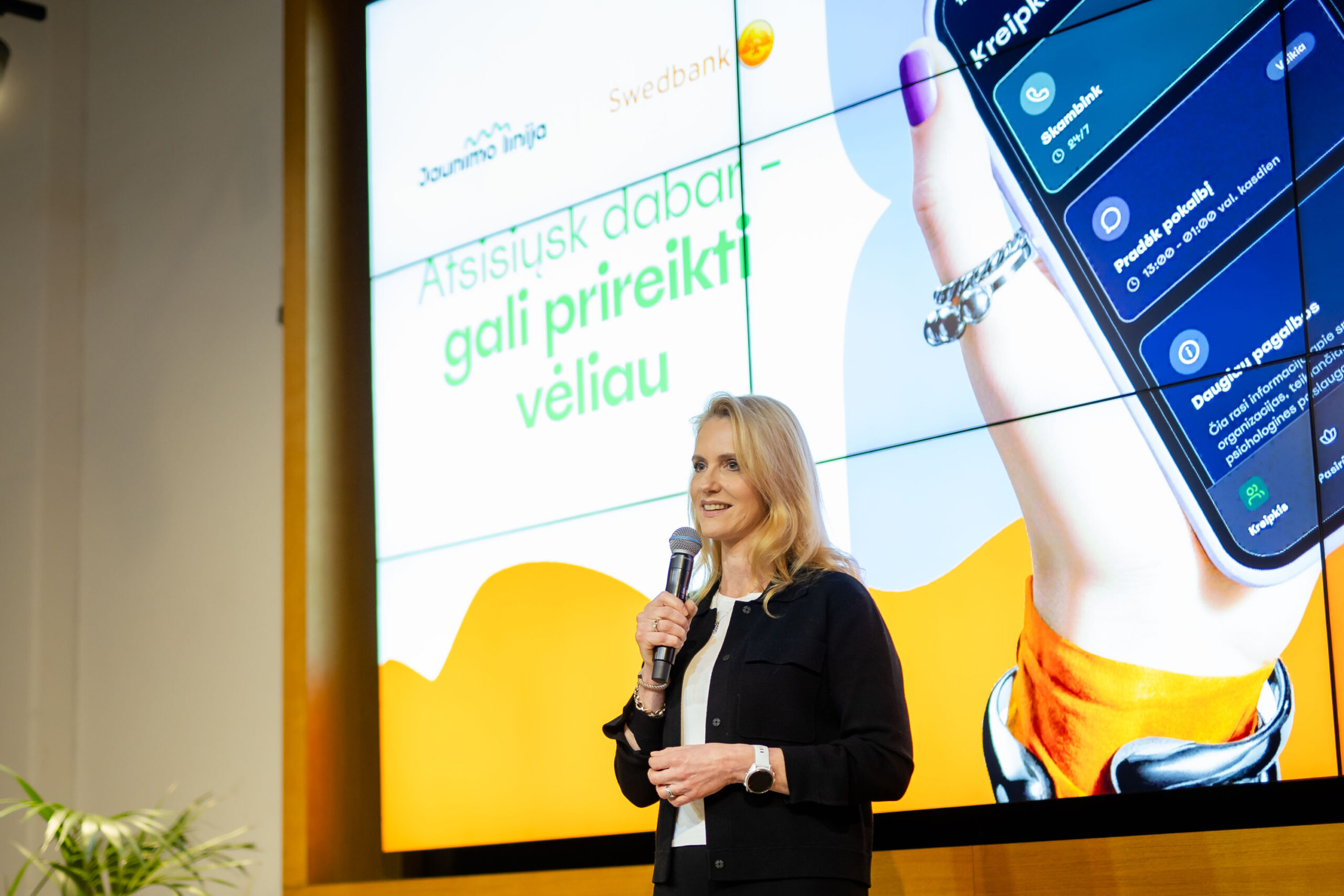 „Esame šalia žmonių jų kasdienybėje ir svarbiausiais gyvenimo etapais. Būdami arti, girdime jų lūkesčius, jaučiame nuotaikas ir kartais – finansinį nerimą. Todėl, greta finansinės sveikatos stiprinimo iniciatyvų, norime būti ir pozityvių pokyčių dalimi emocinės sveikatos srityje. Dėl išgyvenamų emocijų kasmet „Jaunimo linijos“ savanoriai sulaukia apie 45 tūkst. besikreipiančiųjų. Visgi daugeliui jaunuolių paskambinti telefonu nėra įprasta ir tampa dideliu barjeru. Šiandien pristatome pirmąją nemokamą emocinės pagalbos programėlę. Tai – reali pagalbos linija jaunimui, kuri gali būti pasiekiama bet kur ir bet kada“, – teigė „Swedbank“ Lietuvoje vadovė Inga Skisaker.