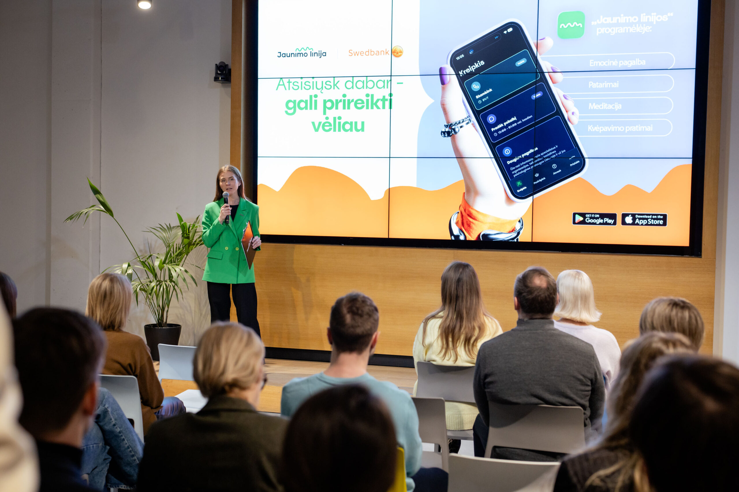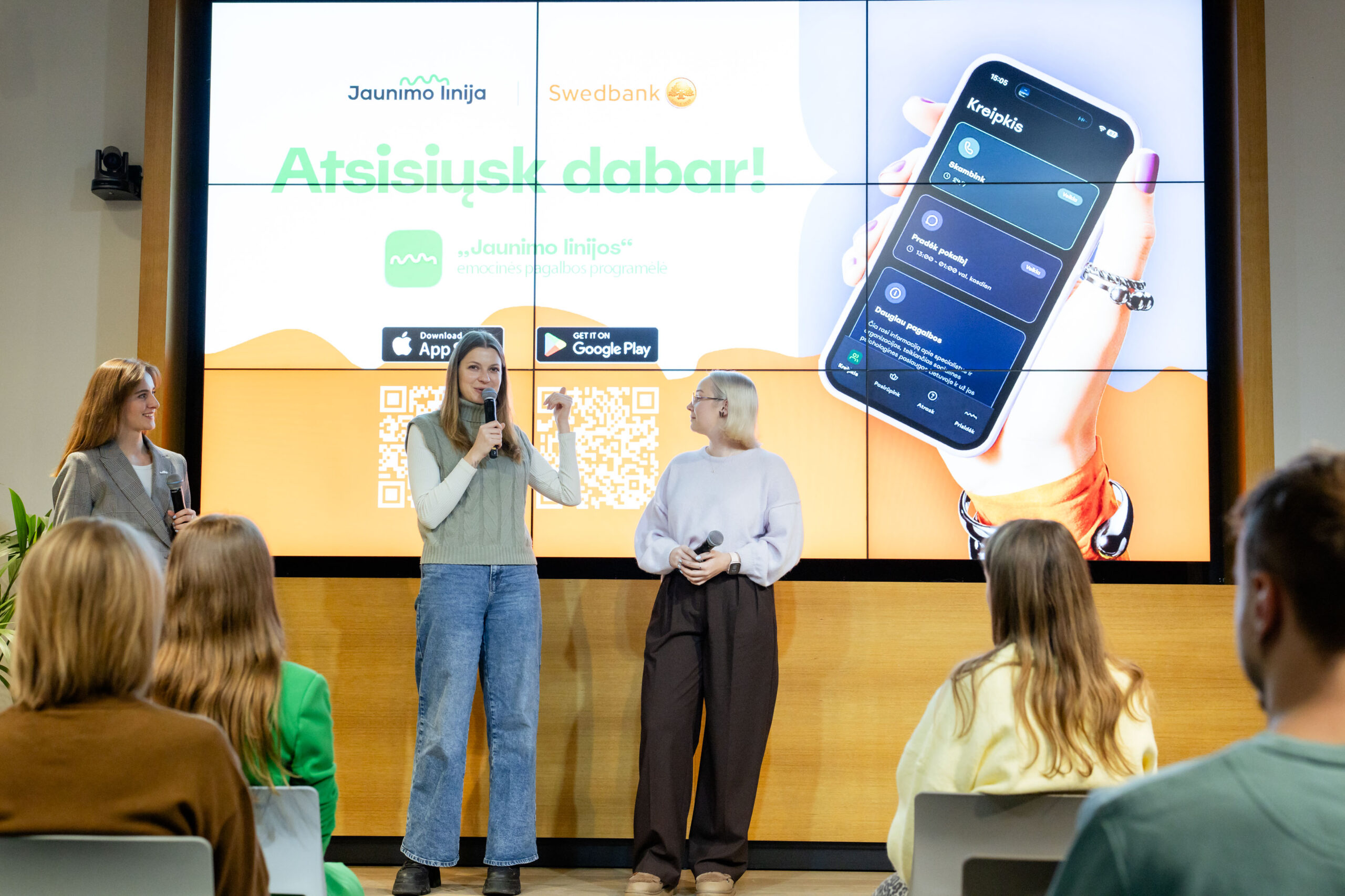 Programėlės pristatymo renginyje „Rockit“ erdvėje dalyvavo „Jaunimo linijos“ ir „Swedbank“ bendruomenių nariai, jaunimo ambasadoriai, nuomonės formuotojai bei žiniasklaidos atstovai.