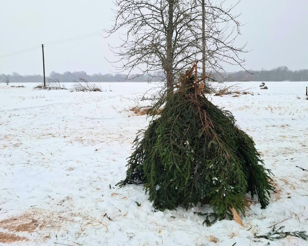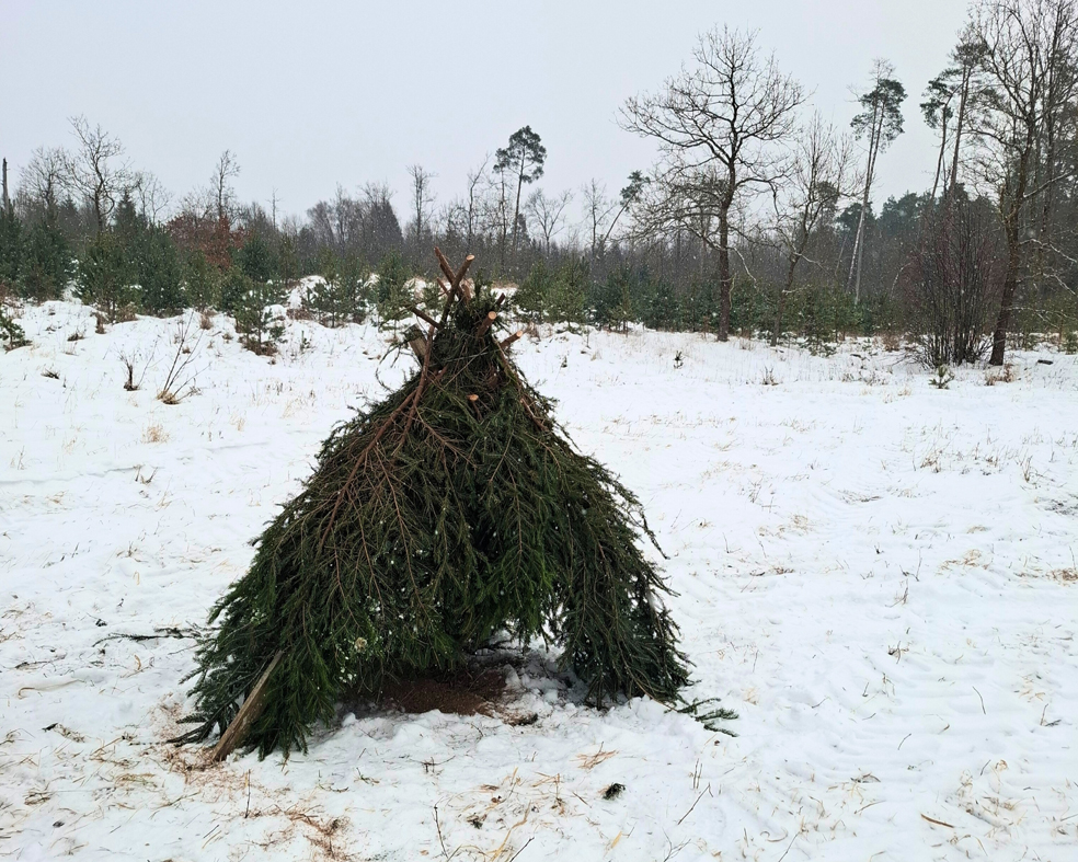Slėptuvę kurapkoms taip pat nėra sudėtinga įrengti. Miške, kirtavietėse susiraskite ant žemės esančių eglišakių ir iš jų suformuokite 1,5 m aukščio ir 1,5–2 m pločio į palapinę panašią užuovėją.