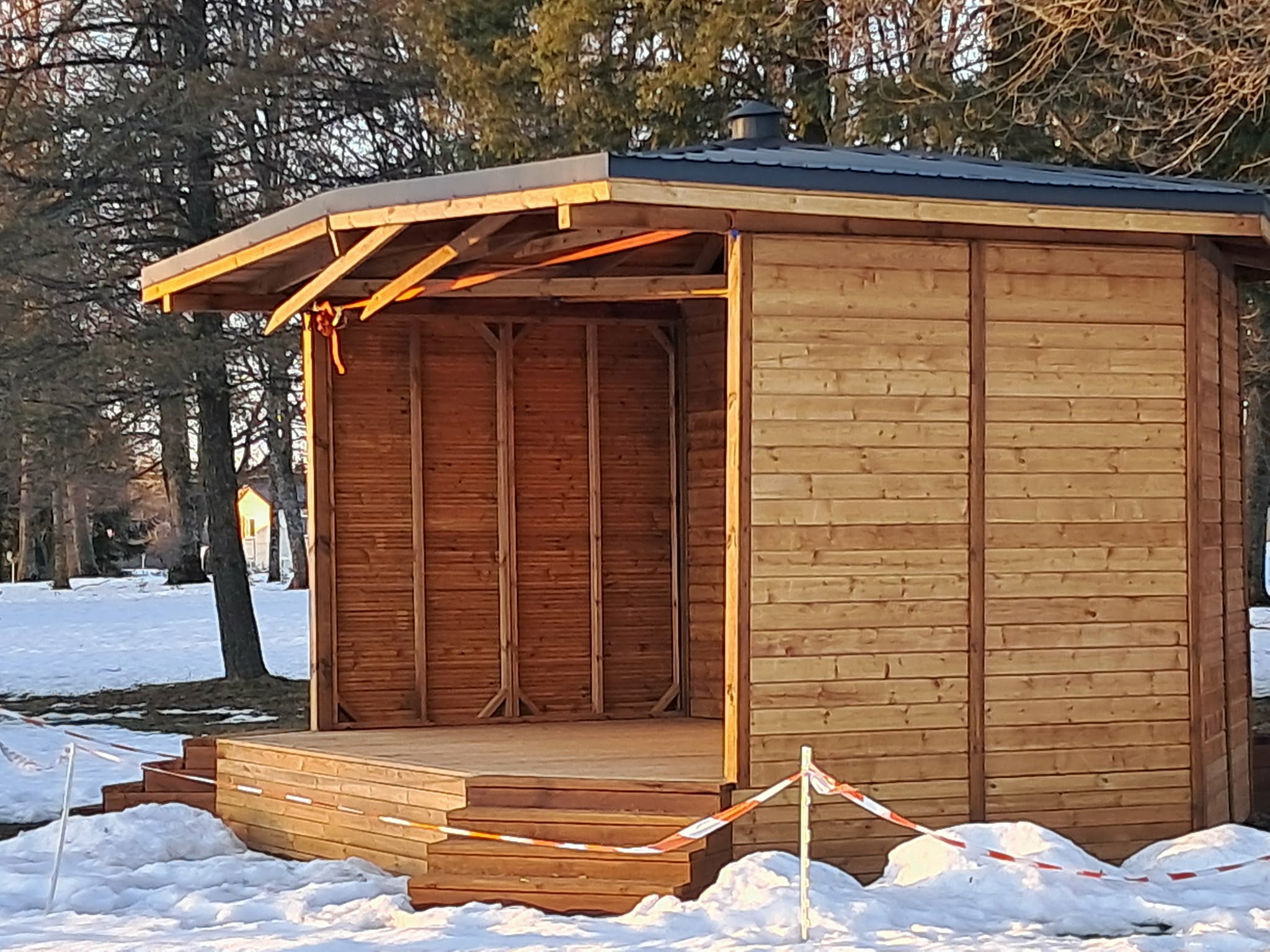 Gausaus sniego šiemet neatlaikė Adomynės dvaro parke iš projektinių lėšų pastatyta pavėsinė – išsiklaipė stogas. Ši žiema visiems didelis išbandymas, bet gyventojams kilo klausimų, ar vien gamtos sąlygos kaltos, kad neatlaiko naujo pastato konstrukcijos.