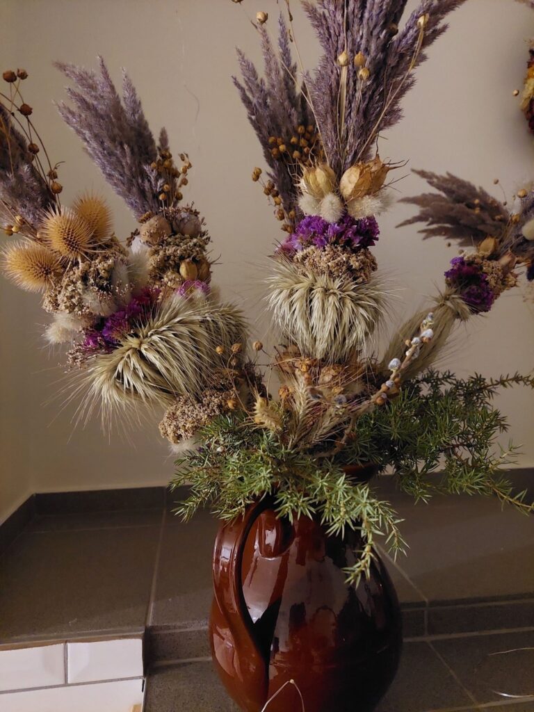 „Labai mėgstu gėles, jų pilni darželiai. Vis galvojau, kaip pradėti. Kartą pabandžiau, išėjo prastoka verba, paskui vis pasižiūrėdavau internete, kažką įdomesnio pamatydavau, pagalvodavau, kaip daryti. Tada buvau bedarbė, laiko užtektinai. Kai nunešiau savo verbas į muziejų, buvau pakviesta į tautodailininkus“, – prisiminė pašnekovė.