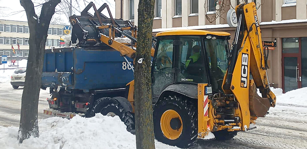 VEŠ SNIEGĄ IŠ ALYVŲ IR P. MATULIONIO GATVIŲ