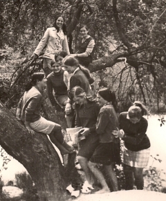 Gyva „kompozicija“ prie Kupos ir senutÄ—lio medžio. Eidavome žiÅ«rÄ—ti kino filmų, ten susitikdavome. Labai baimindavomÄ—s, kad porelÄ—s kartu nepamatytų mokytojai, jie irgi tokias pramogas mÄ—go. PaslapÄiukais traukdavome į gegužines Siauriuose ar Puponyse, ogi mokiniams tada drausdavo eiti į kaimo Å¡okius, galÄ—davome tik mokyklos Å¡okiuose linksmintis. Susitikdavome prie malÅ«no, kuris dabartinÄ—je Atgimimo gatvÄ—je stovi. Visada vaikai ir jau paaugÄ™ burdavosi prie Kupos: žiemÄ… ant ledo ÄiuožinÄ—davome, vasarÄ… maudydavomÄ—s, berniokai žuvaudavo, vėžius gaudydavo. MÄ—gdavome ir Pyragių ežerÄ—lį maudynÄ—ms, apie 1970-uosius buvo ten pastatytas tramplinas Å¡okinÄ—ti į vandenį.