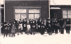 Jaunųjų Å«kininkų ratelio nariai prie VirbaliÅ¡kių mokyklos su savo darbeliais. 1937 m. gruodžio mÄ—nuo. Nuotrauka iÅ¡ Jono Povilo VaitiekÅ«no albumo. KupiÅ¡kio etnografijos muziejaus rinkiniai. Jaunimui patikdavo organizuoti Å¡okius, ypaÄ VirbaliÅ¡kių mokykloje, jÄ… pastaÄius. „Atvažiuodavo iÅ¡ toli gražiais arkliais, papuoÅ¡tais žvanguliais, Å«kininkaiÄiai, o jų važiai – riestais galais. Kiek bÅ«davo svieto, tai ir sunku beįsivaizduoti. Tada įeinant tai ir bilietÄ… tekdavo pirkti, mat ir muzikantus labai gerus pasamdydavo. Ir jiems reikÄ—davo užmokÄ—ti“, – raÅ¡o Aldona ÄŒiurlytÄ— apie VirbaliÅ¡kių kaimo jaunimo pasilinksminimus.