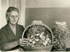 Visuomeninio maitinimo kooperatyvo narÄ— MikonienÄ— Janina su savo gaminiais.