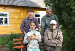 Kaimo senbuvis – Petras Jurgelionis (deÅ¡inÄ—je) gimtajame kaime gyvena su sÅ«numi Gintautu ir jo Å¡eima. IÅ¡ kairÄ—s – Gintauto Jurgelionio žmona JÅ«ratÄ— ir dukra Julija. AutorÄ—s nuotraukos P. Jurgelionis sakÄ—, kad ÄŒiovydžiai jam labai brangÅ«s buvo, kol kaimo neiÅ¡griovÄ—. „ŠimtameÄiais medžiais jis buvo apaugÄ™s, net sodybų pro juos nesimatydavo. O per melioracijÄ… sodybas nukÄ—lÄ—, tuos medžius iÅ¡pjovÄ—. IÅ¡ darbo grįždavau jau kaip ne namo, paskui apsipratau, bet tokios traukos kaimui nebebuvo“, – apgailestavo paÅ¡nekovas. Paklaustas, kaip aplinkybÄ—s susiklostÄ—, kad visÄ… laikÄ… gimtinÄ—je gyvena, P. Jurgelionis iÅ¡pasakojo savo istorijÄ…. Vyresnį brolį paÄ—mÄ— į kariuomenÄ™, namuose liko tik sesuo, tÄ—vai prastos sveikatos buvo, todÄ—l nebuvo kam dirbti. Petras buvo pradÄ—jÄ™s lankyti vidurinÄ™ mokyklÄ… KupiÅ¡kyje, mokslus reikÄ—jo mesti ir eiti Å«kininkauti. Paskui susikÅ«rÄ— Skodinio kolÅ«kis, Äia ir darbavosi, kol jis gyvavo. „Kai darbo nebebuvo, dviem metams iki pensijos likus su sÅ«numi pradÄ—jome gaspadoriauti“, – pasakojo vyras. Su Å¡viesaus atminimo žmona Petras užaugino sÅ«nų GintautÄ… ir dukrÄ… VaivÄ…. Ji įsikÅ«rusi PalÄ—venÄ—je. Gintautas su žmona JÅ«rate augina keturias atžalas – dukrÄ… JulijÄ… ir tris sÅ«nus – Karolį, SimonÄ… ir JokÅ«bÄ…. „Gimiau Äia, Å¡ioje sodyboje. KupiÅ¡kyje pabaigiau vidurinÄ™ mokyklÄ…, atitarnavau kariuomenÄ—je ir pradÄ—jome Å«kininkauti. Jau pusÄ™ gyvenimo tuo ir užsiimu“, – pasakojo G. Jurgelionis. PradÄ—jo nuo 6 ha ir vienos karvÄ—s, paskui banda padidÄ—jo iki penkiolikos. Kai pragyventi vien iÅ¡ gyvulių pasidarÄ— sudÄ—tinga, Ä—mÄ— dirbti. Ä® Panevėžį važinÄ—davÄ™s Gintautas sakÄ— dabar ieÅ¡kantis darbo arÄiau namų. Ūkis irgi sumažėjo. Liko trys karvÄ—s, prieauglis ir dar, anot jo, visokios smulkmÄ—s – viÅ¡Äiukų, žąsiukų, triuÅ¡ių. JÅ«ratÄ— namuose triÅ«sia. Ji – iÅ¡ AukÅ¡taiÄių kaimo netoli PalÄ—venÄ—s. Pasakojo greitai ÄŒiovydžiuose pripratusi, tik ilgÄ… laikÄ… erzino, kad plentas arti. Mat Jurgelioniai įsikÅ«rÄ™ visai Å¡alia kelio. Pasak Gintauto, nemažai sodybų dar ÄŒiovydžiuose yra. JaunesnÄ—s Å¡eimos namus, kurie tinkami gyventi, perka, tvarkosi. „Jei į vienÄ… krÅ«vÄ… visus surinktum, daug gyventojų bÅ«tų“, – sakÄ— Äiovydietis.