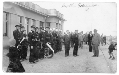 Belaukiant garbingo sveÄio KupiÅ¡kyje (XX a. 4 deÅ¡imtmetis). Tarp dviejų kostiumuotų ponų stovi Leonardas LeÅ¡Äinskas, tuometinis KupiÅ¡kio geležinkelio stoties budÄ—tojas, KupiÅ¡kio gaisrininkų dÅ«dų orkestro dalyvis. Pagal jo pasakojimÄ… kažkuriais metais įvykÄ™s nemalonus incidentas, jis reikiamai neįforminÄ™s ir pasitikÄ—damas perdavÄ— vagonÄ… prekių vienam verslininkui. Tas jį apgavÄ™s ir greitai po Å¡io įvykio pabÄ—gÄ™s į PalestinÄ…. DÄ—l Å¡io įvykio iÅ¡ geležinkelio tarnybos buvÄ™s atleistas ir atsidÅ«rÄ™s su Å¡eima be duonos kÄ…snio. 1931 m. buvo pastatytas naujas KupiÅ¡kio geležinkelio stoties rÅ«mas, iÅ¡likÄ™s iki Å¡ių dienų. Vadovai ir dabartis SovietmeÄiu KupiÅ¡kio geležinkelio stoÄiai, kaip teigia amžininkai, yra vadovavÄ™ Mikuta, LauceviÄius, apie 9 m. - Stepas Vrubliauskas. Jį maždaug nuo 1959-ųjų pakeitÄ™s Eugenijus Petras Å einauskas buvo ilgiausiai Å¡ias pareigas Ä—jÄ™s vadovas. Po jo mirties nuo 1998 m. iki 2009 m. KupiÅ¡kio geležinkelio stoÄiai vadovavo Lina KiaulÄ—nienÄ—. Å iuo metu stoties virÅ¡ininkas yra Ivan Saikovski.
