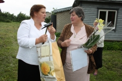 Utenos r. savivaldybÄ—s KultÅ«ros skyriaus vyr. specialistÄ— Zita MackeviÄienÄ— (kairÄ—je) dovanoja dr. Aldonai Vasiliauskienei buityje pritaikomÄ… įrankį.