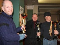 VilnieÄiai apžiÅ«ri taures. IÅ¡ kairÄ—s: Rytas NaruÅ¡eviÄius, Viktoras Kavaliauskas ir Rolandas Augustinas. AuÅ¡ros JonuÅ¡ytÄ—s nuotraukos Lietuvos sportinio KING‘o Äempionatai vyksta du–keturis kartus per metus skirtinguose Lietuvos miestuose, kuriuose daugiausia entuziastų. Žaidžiama kavinÄ—se. Jų metu lankytojai arba žiÅ«rovai gali ateiti, papietauti. Jiems visada paliekami 1 ar 2 staliukai. ÄŒempionatai ar kitos varžybos vyksta nekomerciniais pagrindais. ŽaidÄ—jai renkasi savo noru ne kaip klubo nariai. KomandÄ… sudaro keturi pavieniai žaidÄ—jai, kurie iÅ¡sirenka komandos pavadinimÄ… ir dalyvauja kaip atskiras vienetas. Žaidimo metu prie vieno stalo sÄ—di skirtingų komandų keturi žaidÄ—jai. Sužaidus tris partijas, pirmi aÅ¡tuoni geriausi tos dienos žaidÄ—jai žaidžia dÄ—l 1–8 vietų, o kiti dÄ—l likusiųjų. Ketvirtoje partijoje jau nebesvarbu, kaip sÄ—dima, nes kovojama dÄ—l prizinių vietų individualiai, o drauge ir dÄ—l aukÅ¡tesnÄ—s komandos vietos. ÄŒempionato pabaigoje atminimo medaliais ir taurÄ—mis apdovanojamos pirmos trys asmeninÄ—s įskaitos vietos. Komandai nugalÄ—tojai įteikiama taurÄ— ir medaliai. KING’o Äempionatuose nemažai dalyvių turi įvairių pareigų, pvz., prezidentas įteikia apdovanojimus nugalÄ—tojams, ginÄytinų situacijų sprendimo komanda (iÅ¡ trijų asmenų) sprendžia ginÄus tarp žaidÄ—jų. Visi žino, kad jei Äempionatas vyks KupiÅ¡kyje arba RokiÅ¡kyje, tai Rimvydas Latvys sukvies, registruos visus žaidÄ—jus, pagal burtų sistemÄ… juos susodins prie stalų, skaiÄiuos rezultatus, sudarys geriausių žaidÄ—jų reitingus bei paskelbs juos internete. O jei vyks Vilniuje – tuo užsiims vilnietis Viktoras Kavaliauskas (iÅ¡skyrus reitingus ir rezultatų paskelbimÄ… internete). Daugiausia kupiÅ¡kÄ—nų komandų dalyvavo 2000 metais – net 6 komandos iÅ¡ 7. Žymiausi žaidÄ—jai kupiÅ¡kÄ—nai Mindaugas Pakalnis (jau nÄ—ra tarp gyvųjų, a. a.), Valdas Budreika, Jonas Kantautas, Nikolaj Kuzmickij, KÄ™stutis Tilmantas, rokiÅ¡kÄ—nai – Rolandas MÄ—lynis, Gytis Å imkus, Rolandas RepÅ¡ys, Ala SketerienÄ—, vilnieÄiai – Viktoras Kavaliauskas, Rytas NaruÅ¡eviÄius, Antanas RimÅ¡elis, Jonas JaÅ¡inskas ir daugelis kitų. PlaÄiau skaitykite "KupiÅ¡kÄ—nų mintyse"