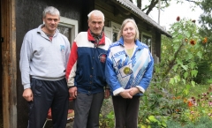 Barzdeniai (iÅ¡ kairÄ—s): Dainius, Jonas, LadziÅ«nÄ— prie senosios trobos. „AÅ¡ Å¡eimoje esu jauniausias, vyriausia yra sesuo Eugenija, po jos gimÄ— Janina, brolis Antanas (jau mirÄ™s), Aldona. Pastaroji Panevėžio sporto mokykloje lankÄ— dviraÄių treniruotes, dalyvaudavo neblogai įvairiose varžybose. Å iuo metu gyvena Airijoje. Kitos seserys Panevėžyje. Kartais jos atvažiuoja į Terpeikius per didžiÄ…sias Å¡ventes, kapų aplankyti. Turįs ir vienintelį anÅ«kÄ… Medą“, – pasakojo apie save ir savo Å¡eimÄ… paÅ¡nekovas. Jonas turi per 10 hektarų žemÄ—s. Å iuo metu jÄ… iÅ¡nuomojÄ™s. SÅ«nus ne kokios sveikatos, tad nebÄ—ra kam Å«kininkauti. Dar yra ir miÅ¡ko. Malkų nereikia pirkti. AnksÄiau laikÄ™s karvÄ™. Dabar jau nebe. Turi pulkelį paukÅ¡Äių. Gaila, bet nemažai viÅ¡tų Å¡eÅ¡kas iÅ¡pjovÄ—. Pragyventi padeda ir neįgalumo pensija. Metų pabaigoje jau sulauks ir pensinio amžiaus.