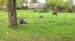 Terpeikietis Antanas JÄ—Äius su sÅ«numi Gintu prosenelių sodybos kieme. Terpeikiuose, einant Lukonių link, paskutinÄ— Antano JÄ—Äiaus sodyba. Jos Å¡eimininkÄ… pamaÄiau kieme besidarbuojantį su sÅ«numi Gintu. „Čia gimiau, užaugau ir numirsiu“, – taip lakoniÅ¡kai savo ryšį su Å¡ia vieta iÅ¡sakÄ— paÅ¡nekintas Antanas. Pasak jo, Äia prosenelių sodyba. Gyvenamasis namas statytas gal kokiais 1918 metais. Jo tÄ—vÄ… įsisÅ«nijo ir užaugino teta UrÅ¡ulÄ— VarnauskienÄ—. Ji savo vaikų neturÄ—jo, anksti tapo naÅ¡le. ÄŒia gyveno kartu su savo seserimi Elena PalÅ¡iÅ«naite. Tai ilga ir paini istorija, į kuriÄ… nenorÄ—tų gilintis. Antano tÄ—vas buvo kilÄ™s iÅ¡ MiliÅ«nų kaimo. Mama irgi. PrieÅ¡kariu Å¡is Å«kis turÄ—jo beveik 24 hektarus žemÄ—s. Jo tÄ—vas iÅ¡vengÄ— Sibiro dÄ—l to, kad ta žemÄ— oficialiai priklausÄ— ne jam, o tetai. „Šiais laikais man pavyko žemÄ™ susigrąžinti. Dabar jau esu europinis pensininkas. Sau pasilikau tik 3 hektarus. Ūkį perleidau sÅ«nui Gintui, gyvenanÄiam Lukonyse. Turiu ir tris anÅ«kes GabijÄ…, UgnÄ™ ir LaurÄ…. Visgi, kiek galiu, sÅ«nui talkinu. Užsiimame ir augalininkyste, ir gyvulininkyste. Laikome apie 25 galvijus, tarp jų ir limuzinų veislÄ—s galvijų, arklį. Dar yra trys Å¡uniukai, katinų. Kaime ne badas, bet labai skaudu, kad kaimieÄio darbas visiÅ¡kai nevertinamas, o pieno, mÄ—sos supirkimo kainos labai juokingos. Visgi Å¡iaip taip stumiamÄ—s į priekį“, – kalbÄ—jo paÅ¡nekovas. Trumpam nuo darbų atsitraukÄ™s Antano sÅ«nus Gintas apgailestavo, kad kol seneliai buvo gyvi, jų apie praeitį neiÅ¡klausinÄ—jÄ™s, jaunam gi tokie dalykai nelabai rÅ«pi. Dabar ir nebÄ—ra ko paklausti. Jo moÄiutÄ— apie MiliÅ«nus tai tikrai bÅ«tų daug kÄ… papasakojusi.
