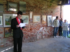 Skambant bažnyčios varpams buvo pakelta šventės „Sielos ilgesys“ vėliava. Su varpų skambesiu Birželio 23-osios vidurdienį, skambant Palėvenės bažnyčios varpams, pakelta šventės vėliava. Kupiškio dekanato dekanas Rimantas Gudelis visiems palinkėjo gražios šventės, gražių šv. Jono atlaidų. „Dominikonų šūkis - laudares, benedicare, prodicare - džiaukitės, laiminkit, pamokslaukit. Per meną tai ir daro žmonės“, - kalbėjo jis. Kanauninkas Vladas Rabašauskas taip pat linkėjo Dievui padedant ir šv. Jonui užtariant švęsti sėkmingai. Noriūnų seniūnijos seniūnas Audronijus Zulonas apgailestavo, kad į šventės atidarymą susirinko nedaug žmonių, bet išreiškė viltį, kad įsibėgėjant jos renginiams žiūrovų vis gausės. Taip ir nutiko. Šiemet vienas iš ryškiausių šventės akcentų buvo pagarba Maironiui ir jo kūrybiniam palikimui. Kunigas J. Jasėnas priminė, kad šie metai yra paskelbti Maironio ir muziejų metais. Jis kvietė visus iš naujo atrasti poeto, tautos žadintojo, kūrybą ir asmenybę. „Ne viena mūsų karta iš Maironio apie Lietuvą sužinojo, poeto žodis ne vienam padėjo ištverti Sibire tremtinio dalią“, - sakė J. Jasėnas. Tądien dainų Maironio tekstais atliko Panevėžio mišrus choras „Godos“ (vad. Urbutienė). Antrąją šventės dieną Palėvenės bažnyčioje po šv. Mišių žiūrovus kvietė programa kunigo, poeto profesoriaus Jono Mačiulio-Maironio 150-osioms gimimo metinėms paminėti. Dainas poeto tekstais atliko LK Vilniaus įgulos karininkų ramovės vyrų choras „Aidas“ (vad. prof. T. Šumskas), „Dialogas su Maironiu“ - eiles skaitė aktorius Petras Venclovas. Spektalis - ne tik kalba Teatro mėgėjai galėjo pamatyti penkis spektaklius. Visi sulaukė didelio žiūrovų susidomėjimo. Kai kam buvo netikėta, kad ne tik svečiai iš Rusijos, Samaros srities Pochvistnevo miesto, vaidino rusų kalba, bet ir privataus Klaipėdos teatro „Rebus“ aktoriai. Tiesa, svečių iš Rusijos spektaklio turinys žiūrovams buvo trumpai perpasakotas, o apie klaipėdiškių pastatymą pasakyta, kad A. Čechovo kūrybą geriausia perteikti originalo kalba. Pasak šio teatro režisieriaus J. Buziliausko, jam patinka kamerinis teatras, kai veiksmas vyksta kuo arčiau žiūrovo. Jie vaidina kiemuose, kavinėse. Jų trupę sudaro ir profesionalūs aktoriai, ir mėgėjai. „Svarbiausia ne kalba, bet spektaklio sukeliamos emocijos, jausmas, išreikšti tai, ką nori pasakyti, pagrindinę mintį. Esame pastatę trikalbį (rusų, lenkų ir lietuvių kalbomis) spektaklį pagal Salomėjos Nėries poeziją „Grįšiu“. Plačiau skaitykite "Kupiškėnų mintyse" Jono Grundos medžio darbų parodos fragmentas. Kunigo Justo Jasėno poezijos ir asmeninės dailės kolekcijos pristatymas. Autorės nuotraukos