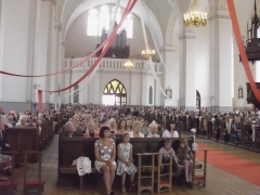Atsiimti brandos atestatų Kupiškio Lauryno Stuokos-Gucevičiaus gimnazijos abiturientai skubėjo į Kristaus Žengimo į dangų bažnyčią. Nidos Šulcienės nuotraukos Penktadienį atestatų šventė šurmuliavo Subačiaus gimnazijoje. Čia šiais metais gimnaziją baigė 24 abiturientai, atestatai įteikti - 22. Iš jų net trys abiturientai mokslus baigė – su pagyrimu. Tai Justina Šateikaitė, Evelina Aukštikalnytė ir Rūta Tvarijonaitė. Kupiškio Lauryno Stuokos-Gucevičiaus gimnazijos abiturientams iškilminga diena buvo šeštadienis. Po pietų gražiai pasipuošusių jaunų žmonių kolona atėjo į Kupiškio Kristaus Žengimo į dangų bažnyčią, kur vyko brandos atetstatų įteikimo iškilmės. Šv. Mišias aukojęs dekanas Rimantas Gudelis pasveikino abiturientus ir priminė, kad tai tik vieno etapo pabaiga ir kito – dar visiškai naujo ir nepažįstamo - pradžia. „Žinios yra labai svarbu, bet gyvenime prireiks ir daug išminties bei kantrybės, kad pasiektumėte užsibrėžtą tikslą“, – kalbėjo dekanas. Abiturientai skambant maršui iškilmingai žengė prie altoriaus pasiimti brandos atestatų. Už kantrybę, suteiktas žinias tėvų vardu visiems mokytojams padėkojo Vilma Mažeikienė. Auklėtojų vardu kalbėjo Darius Mažylis, kuris eilėraščio posmais palinkėjo visiems paliekantiems gimanziją surasti savo gyvenimo kelią, būti ryžtingiems, neišsigąsti pirmųjų nesėkmių. „Šiais metais mūsų gimnaziją baigė 193 abiturientai. Džiaugiamės, kad 12 abiturientų atestatus gaus su pagyrimu. Vieną abiturientą sėkmė lydėjo ypač. Mūsų gimnazistas Saulius Petrauskas egzaminus išlaikė puikiai. Jis gavo net 3 šimtukus, o dar vieno egzamino įvertinimas buvo 99 balai. Tai labai džiuginantys rezultatai, nes tokių laimingųjų iš 40 tūkstančių šalies abiturientų yra tik 7, – sakė Lauryno Stuokos-Gucevičiaus direktorius Virgilijus Žilinskas.“