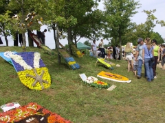 Įspūdingai atrodė floristiniai Lietuvos miestų ir rajonų herbai prie ąžuolų kalnelio.
