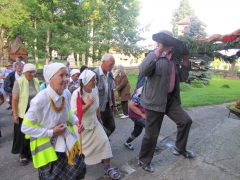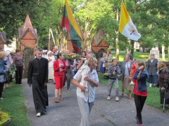 Piligriminė kelionė už Lietuvą prasidėjo Klaipėdoje ir baigsis Latvijoje, Agluonos mieste. Autorės nuotrauka Pakalbinome piligrimų vadovą Gintarą Naudžiūną, kaip jis ir bendražygiai ištveria šimtus ir tūkstančius kilometrų besitęsiančias piligrimines keliones. Laisvalaikio užimtumo asociacijai „Piligrimas“ vadovaujantis G. Naudžiūnas per trylika šios organizacijos veiklos metų nuėjo tūkstančius kilometrų ne tik Lietuvoje, bet ir kitose valstybėse, kad Dievas išklausytų jo ir bendraminčių maldas. „Nuo 1999 metų apėjome visą Lietuvą, Kaliningradą, Latviją. Daugiau nei 4000 kilometrų mūsų asociacijos nariai prieš šešerius metus keliavo Jeruzalėje. Ši kelionė truko beveik pusę metų“, - sakė G. Naudžiūnas. Tokių distancijų, anot jo, piligrimų jėgos neištvertų, jei jie kartu nesineštų kryžiaus, Marijos statulėlės ir nesimelstų nuo ryto iki vakaro. Tokiu pačiu būdu keliautojai praėjusį trečiadienį pasiekė ir Šimonis. Į šį miestelį prieš pat šventąsias Mišias pėsčiomis atėjo apie 30 žmonių. Vieni jų, pasak pašnekovo, prie piligrimų prisijungė Kupiškio rajone, kiti keliauja nuo pat žygio pradžios Klaipėdoje. Čia įsikūrusi asociacija „Piligrimas“. „Einame ir meldžiamės už Lietuvą, už mūsų jaunimą. Norime, kad žmonės grįžtų iš užsienio namo. Kad valdžia pagaliau imtųsi protingų sprendimų ir gyvenimas šalyje taptų lengvesnis“, - kalbėjo kelionės vadovas. Piligriminė kelionė su kryžiumi pėsčiomis prasidėjo liepos 29 dieną ir baigsis rugpjūčio 14-ąją Agluonoje (Latvija). Kelionės metu žadama įveikti 500 kilometrų. „Einame, kai pajuntu pašaukimą, supratimą, kad jau reikia... Šiaip kada papuola tikrai nevaikštome“, - apie piligriminių kelionių tikslą sakė pats jau į dešimtą tokį žygį išsiruošęs G. Naudžiūnas. Kartu su bendraminčiais jis pasiima tik liturginius maldynus, rožinius, patogią avalynę, apsiaustą nuo lietaus, nakvynei kilimėlį ir miegmaišius. Būtiniausius daiktus veža autobusas, o maistą ir prieglobstį naktimis keliautojams suteikia lankomų parapijų kunigai. Per dieną, pasak pašnekovo, piligrimai nueina ir po 20, ir po 30 kilometrų. Todėl kartais ir gerklės nuo giesmių užkimsta, ir ant kojų nuospaudos atsiranda. „Jei netikėtume, neitume. Turime vilties, kad mūsų kelionės pasieks Dievą. Suprantame, kad nėra prasmės tuščiai plepėti, koks sunkus gyvenimas Lietuvoje, belieka tik melstis“, - patikino G. Naudžiūnas ir pakvietė kupiškėnus prisijungti prie keliautojų misijos.