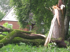„Buvo ir ugniagesiai atvažiavę, bet ką jie padarys su tokiais pjūklais. Medis senas ir storas, čia reikia rimtos pagalbos. Net ir pats nežinau, kaip pastato stogą išlaisvinti nuo įsmigusių šakų. Storas kamienas gali visai sugriauti tvartą“, - nuogąstavo vyriškis. Nuversto medžio šaknys iškėlė ir seną jo pirtelę. Joje šeimininkas laikė malkas. Žalos audra pridarė ir R. Šlyžio sode - čia išlaužytos mažiausiai trys obelys. „Gyvenu čia daug metų ir dar nemačiau tokios audros. Tuo metu buvau namuose ir, kai audra prasidėjo, tai galvojau, kad pasaulio pabaiga. Užėjo toks vėjas ir liūtis, kad nieko nebesimatė. Tik spėjau pamatyti, kaip lėtai virsta medis ant tvarto“, - pasakojo pašnekovas. Savo turto jis nebuvo apsidraudęs. Ketvirtadienio rytą Drūlėnuose nebuvo nė vieno kiemo, kur nesimėtytų nulūžusios medžių šakos. Lietuvos hidrometeorologijos tarnybos atstovė Dalytė