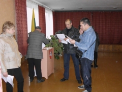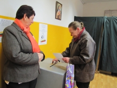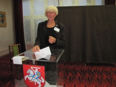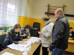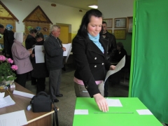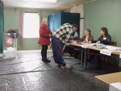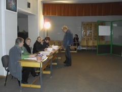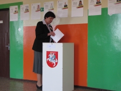 Likus porai valandų iki rinkimų pabaigos Skverbų rinkimų apylinkėje užsuko tik pavieniai rinkėjai. Ingridos Nagrockienės nuotrauka Rinkimus prižiūrėjusi stebėtojų komanda taip pat neįžvelgė jokių pažeidimų. „Pas mus viskas vyko laiku. Pirmuoju maršrutu atvažiavo pilnas autobusas rinkėjų. Todėl ir didžiausio antplūdžio sulaukėme iki pietų. O dabar į rinkimų pabaigą vos vienas kitas gyventojas beateina“, - teigė D. Liaukonienė. Viena paskutiniųjų savo balsą į balsadėžę įmetė Subačiaus miestelio gyventoja ir Skverbų rinkimų komisijos narė Rita Kurulytė.