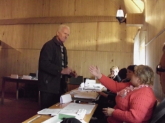 Vilniečiui Valdui šie rinkimai liko tušti – kitoje apygardoje rinkimų dieną jis negalėjo balsuoti. Nidos Šulcienės nuotrauka Šepetos apylinkės rinkimų komisijos pirmininkei Ovidijai Skačelienei nelengva buvo svečiui išaiškinti, kad jis čia negalės balsuoti, nes pastarasis nėra registruotas Anykščių-Kupiškio rinkimų apygardoje. „Labai apgailestaujame, tačiau jums negalime leisti balsuoti. Mes neturime jūsų apygardos vienmandatininkų biuletenių. Jūs galėjote balsuoti iš anksto, o dabar jau vėlu – nebent spėtumėte grįžti į savo rinkimų apygardą.“ Atkaklus svečias vis dar bandė perkalbėti rinkimų komisijos narius teigdamas, kad jam užtektų ir daugiamandatės rinkimų apygardos bei referendumo biuletenių ir apseisiąs be vienmandatės rinkimų apygardos biuletenio. Taip ir nepavykus balsuoti, ponas Valdas labai nenusiminė sakydamas, kad jis turi tik vieną balsą, taigi didelės bėdos dėl to nebus ir rinkimai nesugrius. (Atnaujinta 19.10)