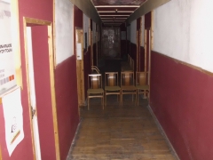 Kad rinkėjai greičiau rastų balsavimo patalpas ir neklajotų tamsiame koridoriuje kaip orientyras sustatytos kėdės. Nidos Šulcienės nuotrauka Rinkimai Antašavoje – rinkėjų sumanumo ir orientacijos išbandymas