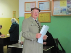 Kupiškio Senamiesčio rinkimų apylinkės pirmininkas Andrius Kleniauskas neša urną su rinkimų biuleteniais. Banguolės Aleknienės nuotrauka Paskutiniai rinkėjai Kupiškio Senamiesčio rinkimų apylinkėje pasirodė likus maždaug penkioms minutėms iki 20 val. Užvėrus rinkimų apylinkės duris ir susumavus duomenis paaiškėjo, kad čia savo valią pareiškė 627 rinkėjai arba 44,47 proc. Pasak šios apylinkės pirmininko Andriaus Kleniausko, dar prie šių skaičių reikės pridėti išankstinio balsavimo biuletenius. Komisijos pirmininkas pasidžiaugė, kad rinkimų diena praėjo ramiai. Gana aktyvus buvo jaunimas. Nustebino grupelė gimnazistų, kolektyviai atėjusių pareikšti savo pilietinės pozicijos. Tačiau visgi rinkėjų aktyvumas buvo mažokas ir nuvylė. „Žinant, kaip žmonės kritiškai pasisako apie Seimo darbą, kaip dejuoja dėl sunkaus gyvenimo, galima buvo manyti, kad eis masiškiau rinkti naujos valdžios. Manau, kad žmones, ypač vyresnius, nuo balsavimo atbaido sudėtingi ir painūs balsavimo biuleteniai. Prognozuoju, kad gali būti jų nemažai sugadintų vien dėl nesupratimo, kaip reikėtų pildyti. Ne vienas komisijos vis teiravosi, kokia to pildymo tvarka. Taip pat, manyčiau, kad sudėtinga biuletenių skaičiavimo tvarka. Ir komisijos nariams baisu, jog nesuklystų. Tie skaičiavimai užsitęsia iki paryčių. Gal ateityje pasisėmę patirties iš užsienio sugebėsime balsavimo procedūrą supaprastinti“, - dalijosi savo nuomone Senamiesčio apylinkės pirmininkas.
