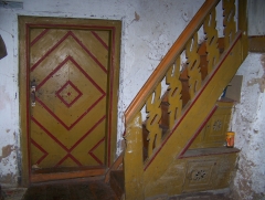Joanos Å eÅ¡elgienÄ—s troboje laiptai, vedantys į pastogÄ™, ir narvelis po jais laikyti paukÅ¡Äiams. 2009 m.