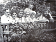 Panevėžyje pas Petrą Garbauską. Apie 1962–1963 metus. Iš kairės: Algirdas Leonas Balna, ketvirta Vanda Bogužienė, Audra Bogužaitė, Joana Balnienė ir Birutė Bogužaitė. Nuotrauka iš Joanos Balnienės albumo