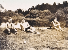 Å alia PajuodupÄ—s kaimo prie LÄ—vens. IÅ¡ kairÄ—s: Algis Matekonis, Bronius Domža ir Jonas Jokubka. Apie 1960 m. IÅ¡ GenovaitÄ—s DomžaitÄ—s-ZulonienÄ—s albumo. KupiÅ¡kio etnografijos muziejaus rinkiniai 1843 metais panaikinus KupiÅ¡kio seniÅ«nijÄ…, dvaro vietoje įkuriamas kaimas ir priskiriamas KupiÅ¡kio valstybiniam dvarui. Tuomet dauguma dvaro pastatų iÅ¡parduodami valstieÄiams, o likusieji atitenka KupiÅ¡kio valsÄiaus administracijos reikmÄ—ms. Dvaro sodybÄ… nusiperka Rapolas Å imonis. Dar labai jaunas bÅ«damas bÅ«simasis dailininkas Kazys Å imonis dažnai nueidavo į sveÄius pas dÄ—dÄ™ RapolÄ… Å imonį, į PajuodupÄ—s dvarÄ… prie LÄ—vens. Dvaras buvo gražioje vietoje, ant LÄ—vens upÄ—s skardžio su didžiuliu sodu, apsodintas medžiais, sulaukusiais jau Å¡imto metų. O ilgas, dvigalis vienaaukÅ¡tis centrinis pastatas su įstiklintu prieangiu stovÄ—jo dvaro centre. Ta vieta labai sužavÄ—jo bÅ«simÄ…jį menininkÄ…, kad jis ir bÅ«damas garbaus amžiaus neretai prisimindavo PajuodupÄ™.